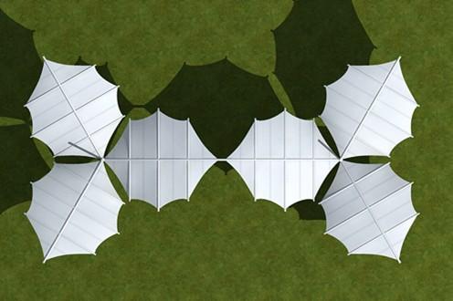 1、利用高強度張力:景觀膜結構利用膜材的高強度張力,通過拼接和焊接,設計出不同的造型,制作出豐富的膜結構景觀。 2、應力控制下的空間形狀&zwnj...